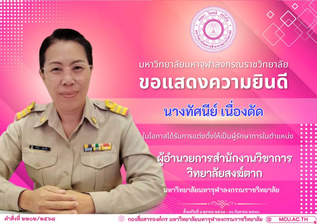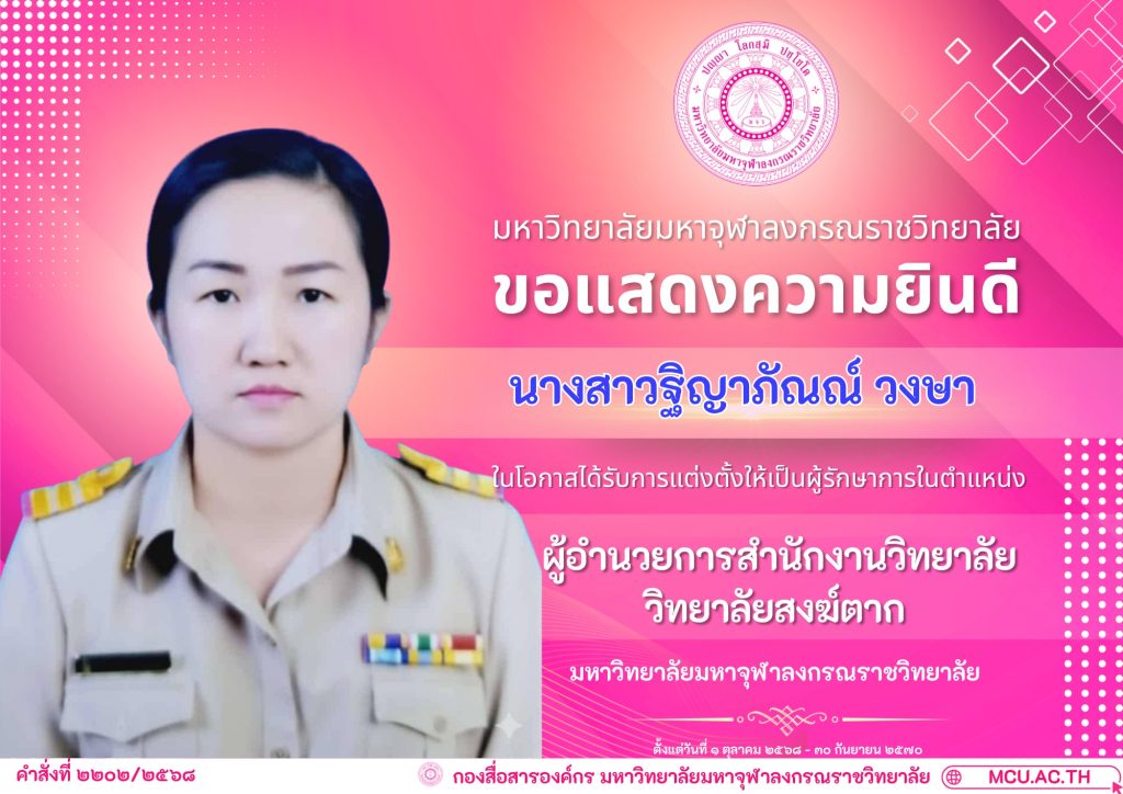 ตามคำสั่งมหาวิทยาลัยมหาจุฬาลงกรณราชวิทยาลัยที่ ๒๒๐๒/๒๕๖๘